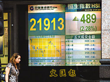 恒指7日升489點(diǎn),成交增至600億元。(圖片來源:文匯報(bào))