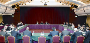 圖:澳門特區(qū)政府與六家博彩企業(yè)8日會議。(圖片來源:澳門日報)