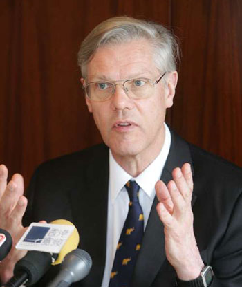 羅永成本月4日抵港,在港停留4天,主要是進一步拓展倫敦金融城市與香港在金融事務上的聯(lián)系,推廣倫敦金融城的碳排放額貿易項目,以及與香港分享該城在發(fā)展伊斯蘭金融產品的專業(yè)經驗。他8日在香港交易所兩場有關碳貿易的研討會上發(fā)表主題演講,之后會見傳媒。