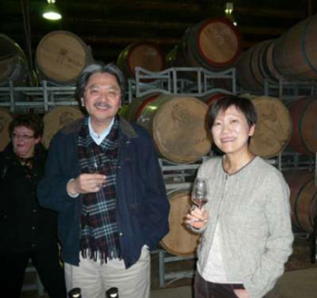 曾俊華(左)在澳大利亞一個酒莊品酒。(圖片來源:大公報(bào))