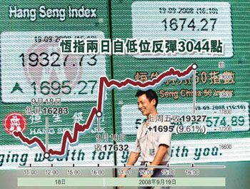 中新網(wǎng)9月22日電 據(jù)香港《文匯報》報道,美國政府的一連串救市措施,刺激道指上周五大漲368點,收于11388點。21日晚上,國家證監(jiān)會又公布放松上市公司股票回購的管制,無疑為A股再注強心針。