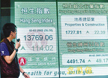 中新網(wǎng)2月10日電 據(jù)香港《文匯報(bào)》報(bào)道,雖然9日上證綜指繼續(xù)上升近2%以及美國道瓊斯指數(shù)上周五上升217.52點(diǎn),但港股表現(xiàn)則未如市場估計(jì)的理想,在高開210點(diǎn)至13865點(diǎn)后后勁不繼,收市報(bào)13769.06點(diǎn),升114.02點(diǎn),不僅未能突破14000點(diǎn),而且連13800點(diǎn)也未能站定。