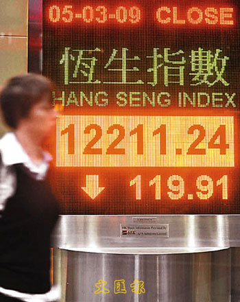 在美國(guó)總統(tǒng)奧巴馬呼吁入市后,美股5日回升150點(diǎn),港股跟隨而高開157點(diǎn),但隨即回落呈牛皮格局,下午即見(jiàn)全日低位12163點(diǎn),全日恒指則收?qǐng)?bào)12211.2點(diǎn),跌119.9點(diǎn),跌幅1%,成交431億元。