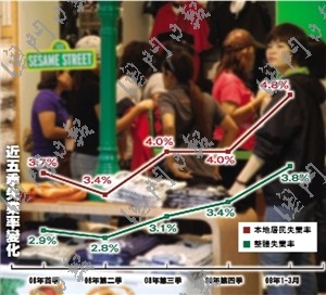 學者指出,每年第二、三季有不少大、中學生畢業(yè)投入勞動力市場,推高失業(yè)率。今年就業(yè)壓力大,畢業(yè)生找工作需時,第二、三季失業(yè)率恐怕會繼續(xù)上升,破4%的“臨界點”。雖然失業(yè)率會再攀升,但只要不超過5%,對社會就不會造成太大影響。