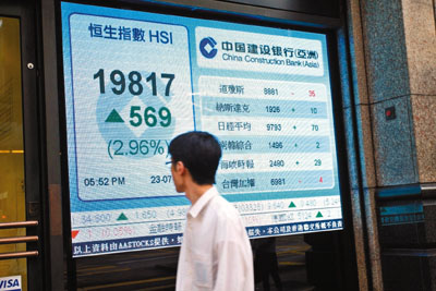 恒指23日高開184點(diǎn),下午升幅更強(qiáng),升至接近20000點(diǎn)水平,收報(bào)19817.6點(diǎn),是去年10個(gè)月以來的高位,全日升569點(diǎn),升幅近3%,成交744億。