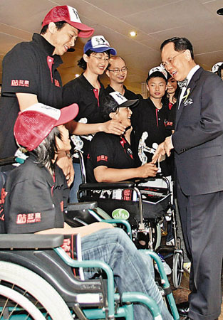 中新網(wǎng)5月13日電 據(jù)香港《文匯報》報道,在地動山搖后的一片頹垣敗瓦中,他們縱使傷痕累累,依舊堅強地“站起來”,活出生命的精彩。在參觀“蜀港同心 大愛無疆──汶川大地震一周年紀念圖片展”后,香港特首曾蔭權(quán)伉儷、中聯(lián)辦主任高祀仁與在地震中因肢體損傷而截肢的多名傷員逐一握手與交談,簡單的“打氣”鼓勵。