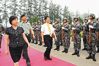 學(xué)員早上乘車到解放軍北京衛(wèi)戍區(qū)的軍營參觀,文匯報副社長兼未來之星同學(xué)會主席韓力在北京衛(wèi)戍區(qū)警衛(wèi)三師副師長朱繼明陪同下檢閱軍隊,之后兩人與北京衛(wèi)戍區(qū)警衛(wèi)三師副參謀長閆慶峰、北京衛(wèi)戍區(qū)警衛(wèi)三師十一團團長李永奎、北京衛(wèi)戍區(qū)外事處處長王普升等及一眾同學(xué)欣賞軍事表演。