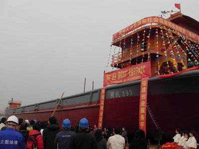 圃機(jī)393號(hào)船身長80米,排水量約齊千噸,載重可達(dá)5000噸,號(hào)稱珠江三角洲第一艘甲板工程船。該船將用于港珠澳大橋工程運(yùn)輸,包括搬運(yùn)石頭、攪拌機(jī)等,目前已簽約運(yùn)輸石30萬立方米,每天運(yùn)輸3500立方米,為港珠澳大橋建設(shè)打基礎(chǔ)。