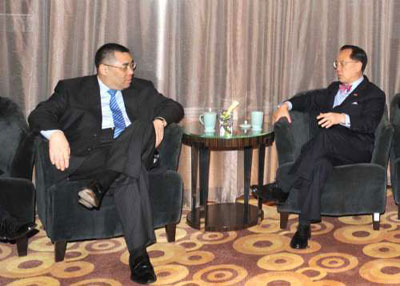 中新網(wǎng)3月4日電 據(jù)香港中通社報(bào)道,香港特區(qū)行政長官曾蔭權(quán)及澳門特區(qū)行政長官崔世安3日下午抵達(dá)北京后,兩人共進(jìn)晚餐。曾蔭權(quán)及崔世安將列席5日全國人大會(huì)議開幕式。