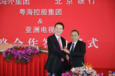 簽署儀式11日早在北京飯店舉行,由亞視行政總裁胡競英跟中國人壽、招商銀行、中國海外集團(tuán)、北京銀行、粵?毓杉瘓F(tuán)五間企業(yè)的高層簽署戰(zhàn)略合作協(xié)議。查懋聲、多位亞視高層、過百名政商界人士出席,場面熱鬧。王征以主持身份逐一介紹嘉賓,并由查懋聲首先致詞。