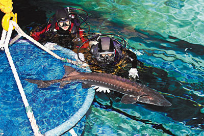 中新網(wǎng)4月24日電 據(jù)香港《文匯報》報道,內(nèi)地贈送香港的10只國寶級中華鱘,經(jīng)過16小時運(yùn)送后,23日安全抵達(dá)香港海洋公園,該園指它們身體狀況及適應(yīng)情況十分良好。