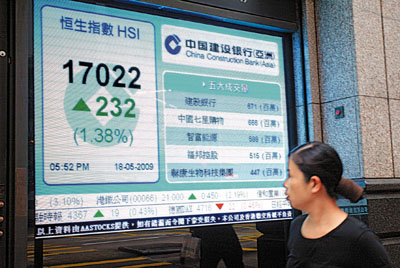 中新網5月19日電 據香港《文匯報》報道,香港首季經濟比預期差,加上日股疲軟,港股剛開市便下跌,一度跌約450點,但港股下午隨內地A股反彈,收市倒升232點,重上17000點關口,收報17022點,全日波幅多達728點,是近期少有的大型波動,成交回升上663億元。