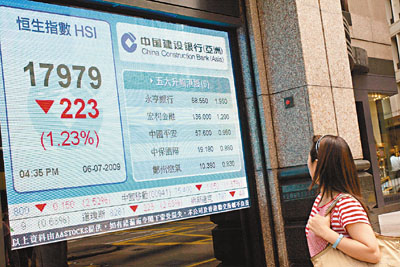 中新網(wǎng)7月7日電 據(jù)香港《文匯報(bào)》報(bào)道,港股6日走勢(shì)反復(fù),低開近200點(diǎn)后,一度倒升55點(diǎn),但午后大市再下跌,全日呈“倒V形”走勢(shì),恒指收?qǐng)?bào)17979點(diǎn),跌223點(diǎn),全日成交只有545億元,即月期指低水45點(diǎn)。