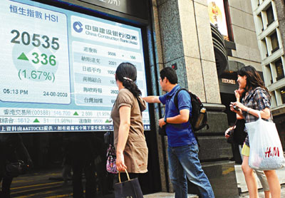 中新網(wǎng)8月25日電 據(jù)香港《文匯報(bào)》報(bào)道,受惠美國樓市數(shù)據(jù)回暖,及美聯(lián)儲主席伯南克樂觀經(jīng)濟(jì)評論,亞太股市24日全在線揚(yáng),帶動全球股市創(chuàng)10個(gè)月高位。在外圍日股、A股造好下,帶動港股向好,恒指全日收報(bào)20535.9點(diǎn),升336.9點(diǎn),升幅1.7%,重上10天線,成交627億元。
