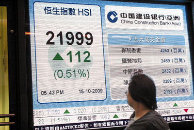 中新網(wǎng)10月16日電 據(jù)香港《文匯報(bào)》報(bào)道,美國(guó)道指周三晚突破1萬(wàn)點(diǎn)大關(guān),刺激港股15日高開(kāi)300點(diǎn),恒生指數(shù)最高曾見(jiàn)22250點(diǎn),創(chuàng)去年8月以來(lái)新高,但其后升幅收窄,中午僅升195點(diǎn);午后市況更弱,在尾市經(jīng)一輪急跌后,恒指全日收?qǐng)?bào)21999點(diǎn),只升112點(diǎn),但成交額大增約200億元至804億元。