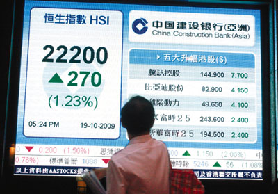 中新網10月20日電 據香港《文匯報》報道,港股19日低開后回升,隨內地股市午后升幅擴大,港股也跟隨,曾經升過逾300點,全日升270.5點,收報22200點,是逾14個月以來,恒指首次站在22000點之上收市,但全日成交減少至610億元。