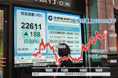 中新網(wǎng)11月26日電 據(jù)香港《文匯報》報道,內(nèi)地A、B股齊反彈,帶動恒指25日回升,但升幅遠(yuǎn)比內(nèi)地股市小。上證A股25日反彈1.9%,上證B股更升5.1%,帶動恒指先跌后回升,全日收報22611.8點(diǎn),升188.6點(diǎn),升幅不夠1%,但成交增至787億元。