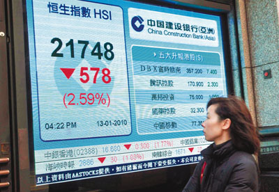 人民銀行周二晚出其不意宣布上調(diào)銀行存款準(zhǔn)備金率50個(gè)基點(diǎn),凍結(jié)近3000億元人民幣資金,市場(chǎng)擔(dān)憂內(nèi)地收緊銀根措施陸續(xù)有來(lái),拖累亞太區(qū)主要股市急挫。市場(chǎng)12日晚普遍預(yù)期13日港股會(huì)跌約300至400點(diǎn),結(jié)果跌幅更超預(yù)期。恒指低開336點(diǎn),午后跌幅擴(kuò)大,最多跌638點(diǎn),收市報(bào)21748.6點(diǎn),跌578點(diǎn),跌幅達(dá)2.6%。
