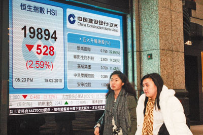 中新網(wǎng)2月20日電 據(jù)香港《文匯報》報道,美國突然調(diào)高貼現(xiàn)利率,市場擔(dān)心美國會提早退市及加息,港股急跌528點,失守20000點,跌幅達2.6%,是19日亞太區(qū)股市中表現(xiàn)最差的市場。香港地產(chǎn)股、內(nèi)銀股及資源股成為跌市重災(zāi)區(qū),成交淡靜只有430.7億元。