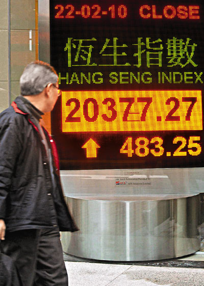 中新網(wǎng)2月23日電 據(jù)香港《文匯報(bào)》報(bào)道,內(nèi)地股市長(zhǎng)假期后重開,A股走勢(shì)偏軟,滬深兩市均未能收紅盤。由于香港上周五已經(jīng)大跌,加上下午賣地成績(jī)理想,令恒指22日擺脫A股的羈絆,大市在匯控、中移動(dòng)及一眾地產(chǎn)股上升帶動(dòng)下,重上20000點(diǎn)水平。