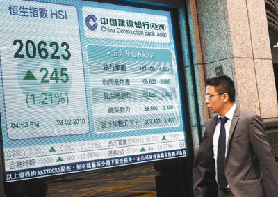 中新網(wǎng)2月24日電 據(jù)香港《文匯報》報道,財政預(yù)算公布前,港股反復(fù)造好,23日早段雖跟隨外圍低開,最多跌260點,但賣地成績理想繼續(xù)刺激香港地產(chǎn)股上升,帶動港股由跌轉(zhuǎn)升,加上傳聞迪拜世界再獲注資,消息利好匯控,恒指最多曾倒升330多點,收市報20623點,升245.7點,升幅1.2%,是2月3日以來近三周的最高收巿。