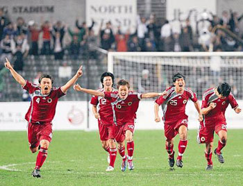 中新網(wǎng)12月11日電 據(jù)香港《明報》報道,在特首曾蔭權(quán)及9482名觀眾見證下,香港足球締造歷史,10日晚苦戰(zhàn)120分鐘與朝鮮踢成1﹕1,互射12碼香港男足勝5﹕3,歷來首度在綜合運動會晉身決賽,并確保有一面獎牌,12日下午5時將在香港大球場上演決賽,與日本爭奪金牌。