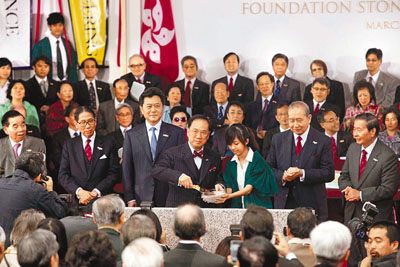 中新網(wǎng)3月17日電 據(jù)香港中通社報(bào)道,在最近一項(xiàng)大學(xué)排名位列“亞洲第一”的香港大學(xué),16日為百周年校園舉行奠基典禮。香港特區(qū)行政長(zhǎng)官曾蔭權(quán)、中央駐港聯(lián)絡(luò)辦公室副主任李剛、港大副校監(jiān)李國(guó)寶,以及李兆基、鄭裕彤、陳祖澤等社會(huì)知名人士出任主禮嘉賓。