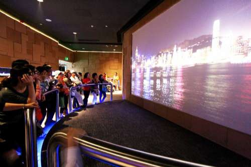 步入展覽廳,觀眾便置身于360度弧形屏幕,觀看一條長2分鐘主題為“香港多面體”的短片,影片藉多元的聲音和視覺效果,帶出不同層次生活的對比,如城市與自然,傳統(tǒng)與現(xiàn)代,中西文化,發(fā)展與保育等。同時(shí),場內(nèi)有十四個(gè)直立LED顯示屏聯(lián)動(dòng)播放,營造出動(dòng)感和引人入勝的視覺體驗(yàn)。觀賞影片時(shí),還可和地面上特制的磚塊互動(dòng),互動(dòng)地磚可感應(yīng)觀眾的移動(dòng),并配合短片的色調(diào),亮起不同的顏色方塊做出回應(yīng)。