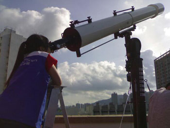 另外,香港天文學(xué)會(huì)也在屯門一間小學(xué),擺放有濾光設(shè)備的望遠(yuǎn)鏡,供市民觀看日偏食,預(yù)料會(huì)有大約1000人觀看。