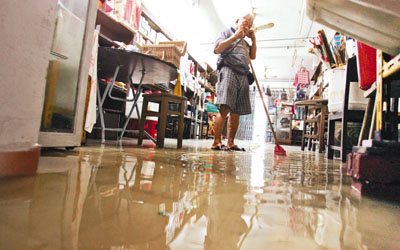 然當(dāng)局既設(shè)預(yù)警又派員協(xié)助,但有大澳居民認(rèn)為幫助不大。其中面包店?yáng)|主表示,水浸浸壞多部雪柜及焗爐,損失慘重,埋怨政府遲遲未能建好河堤,令每年雨季都避不過(guò)水浸的威脅,感到十分無(wú)奈,冀港府能及早解決問(wèn)題。