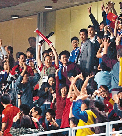 而當(dāng)香港隊(duì)在互射12碼擊敗日本摘金后,曾蔭權(quán)更興奮得跳了起來(lái),與特首辦主任譚志源擁抱慶祝。其瘋狂投入肉緊的程度,遠(yuǎn)勝一般球迷。
