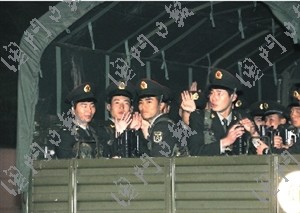 由駐澳部隊(duì)指揮車、裝甲車、運(yùn)輸車等二十多輛軍車組成的車隊(duì),26日清晨5時(shí)許由珠;卣龓X營(yíng)區(qū)出發(fā),取道南灣大道、橫琴大橋,經(jīng)由蓮花大橋進(jìn)入本澳。車隊(duì)在警車開路下到達(dá)凼仔軍營(yíng),駐澳部隊(duì)在軍營(yíng)內(nèi)舉行隆重的防務(wù)交接儀式,司令員王玉仁、政委許進(jìn)林在凼仔營(yíng)區(qū)迎送交替防務(wù)的兩個(gè)連隊(duì)。