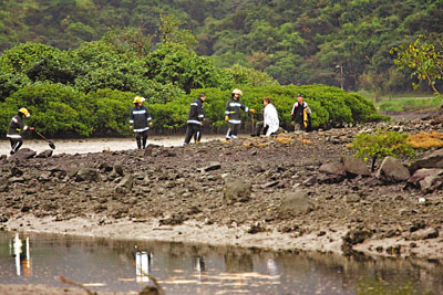 警方消息稱,3日凌晨3時(shí)許,裘與陳到達(dá)鹿頸路對(duì)面沙頭角海邊,適遇上潮退,露出一片寬約200米的泥灘,兩人遂冒險(xiǎn)摸黑涉灘,圖步往海邊釣大魚(yú),但因泥灘瘀泥深及膝頭,舉步維艱。