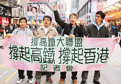 社交網(wǎng)站近日有人組成“撐起高鐵,撐起香港”群組,并已有逾萬(wàn)名支持者。一群生于上世紀(jì)70及80年代的人士更組成“撐高鐵大聯(lián)盟”,上周成立“集會(huì)支持西九起高鐵”群組,目前已有逾1100名支持者。4名聯(lián)盟成員13日在旺角街頭,呼吁其他高鐵支持者本周五往立法會(huì)門外靜坐,以示“撐高鐵”的決心。