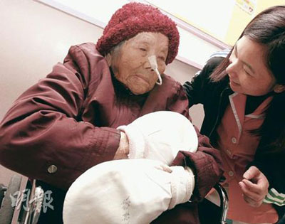張婆婆人稱“桂妹”,是客家人,住在大埔。記者19日到老人院探望桂妹時,由于沒有其親屬在場,院方只允許記者查看桂妹入院時填寫的身份證出生日期。按入院紀(jì)錄,她身份證上印上的出生日期是1893年1月4日,即生于清朝光緒19年,由于舊派中國人只記農(nóng)歷生日,1月4日實指農(nóng)歷正月初四。