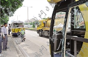 發(fā)生意外地點為氹仔北安馬路往機(jī)場方向一公共巴士站附近。現(xiàn)場消息指,2日上午約11時,一輛幾乎坐滿乘客的新福利26號小巴沿該處行駛,并如常到站上下客。當(dāng)巴士起步出車不久,同線尾隨的一輛賭場巴士從遠(yuǎn)處急速駛至,收剎不及猛撞前車致車尾凹陷,擋風(fēng)玻璃碎裂散布車箱和地上。