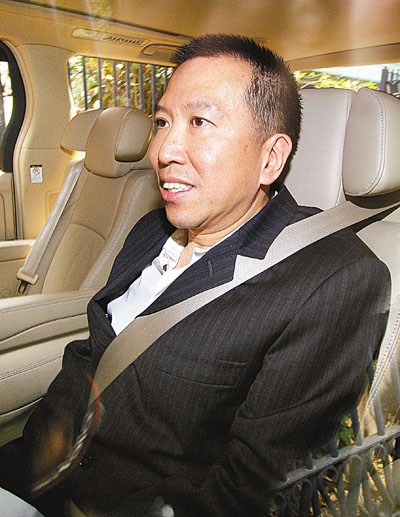 陳振聰18日穿上一套黑色西裝,下午2時(shí)30分在1名保鏢陪同下,乘坐其掛有兩地車牌的黑色豪華7人車,離開位于山頂歌賦山的豪宅,約10分鐘后便到達(dá)西區(qū)警署。警署門外早有逾20名記者守候,而警方也早有準(zhǔn)備,派出6、7名軍裝警員在警署停車場(chǎng)門口維持秩序。
