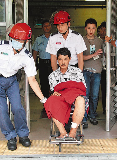昨日下午3時(shí)50分左右,有人又再登門(mén)舊事重提,葉準(zhǔn)妻應(yīng)門(mén),稱(chēng)丈夫不在家,企圖打發(fā)他離開(kāi),未料對(duì)方突告情緒激動(dòng),在走廊跨過(guò)約4呎高欄河,揚(yáng)言跳樓,街坊見(jiàn)狀報(bào)警。警員接報(bào)迅速到場(chǎng),并趁其不備,一擁而上將他制服,混亂間其腳部擦傷,需送院敷治。
