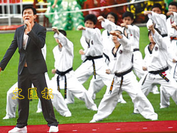 中新網(wǎng)5月5日電 據(jù)香港文匯報報道,香港各界青少年迎奧運系列活動委員會4日在香港大球場舉行“心系奧運.中華青年大聯(lián)歡”,劉德華、金培達、李克勤、方力申等香港藝人及內(nèi)地歌手周筆暢、王宏偉參與演出,陣容相當龐大。