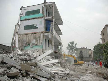 災區(qū)不少校舍在地震中倒塌。(圖片來源:大公報)