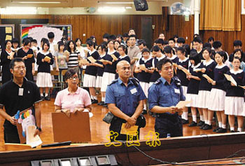 六月五日,香港學(xué)友會(huì)、香港群青會(huì)在香島中學(xué)舉辦“川港連心—四川地震悼念會(huì)”。多名曾經(jīng)到災(zāi)區(qū)報(bào)道的記者和搜救隊(duì)成員及專家,應(yīng)邀到場(chǎng)與學(xué)生們一起悼念遇難的同胞,并分享生命教育的意義。 中新社發(fā) 洪少葵 攝