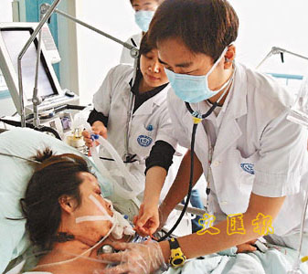 尹淑玲抵達醫(yī)院后,便協助病房內約百位骨折的病人,她把消毒藥水、紗布等放滿紅色背囊,懶理背囊與護士服不相襯,便扛著它穿梭病房,為病人清洗傷口,每天只睡4、5小時。“有個做了腳部截肢手術的30來歲的男病人,他背部也有一個大傷口,每次為他清洗傷口時,明知他很痛,但他很堅強,更感謝我們的幫忙。”