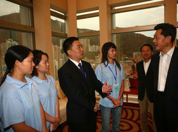 報(bào)告會(huì)之后,中聯(lián)辦副主任李剛會(huì)見(jiàn)了代表團(tuán)的各位成員。曾經(jīng)長(zhǎng)期從事青年工作的李剛,就青年工作的開(kāi)展與來(lái)自四川的青年代表親切交談。對(duì)于青年人在抗震救災(zāi)中的杰出表現(xiàn),李剛表示十分感動(dòng),他希望青年人在重建過(guò)程中發(fā)揮更大力量。
