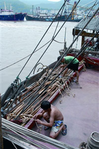 為期兩個(gè)月的南海伏季休漁期8月1日結(jié)束,大批內(nèi)地漁工日前已返回受雇的漁船工作,為錨泊內(nèi)港的200多艘漁船維修補(bǔ)給,如整理各種捕撈工具、添加燃油及購買冰塊,為8月1日上午復(fù)業(yè)作最后準(zhǔn)備。