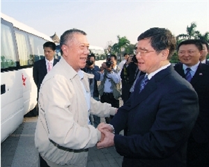 深圳副市長(zhǎng)卓欽銳歡迎何厚鏵一行。(圖片來(lái)源:澳門(mén)日?qǐng)?bào))