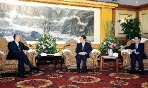 何厚鏵與深圳市委書(shū)記劉玉浦及市長(zhǎng)許宗衡會(huì)晤。(圖片來(lái)源:澳門(mén)日?qǐng)?bào))