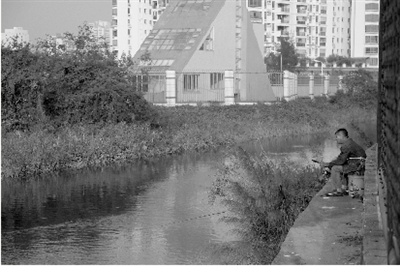 有居民由被破壞圍網(wǎng)進入鴨涌河邊垂釣。(圖片來源:澳門日報)