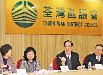 香港民政事務(wù)局局長曾德成22日在尤曾家麗、民政事務(wù)總署署長陳甘美華陪同下,出席荃灣與西貢區(qū)議會會議,聽取新一屆區(qū)議會的意見。