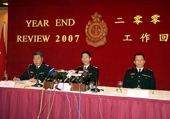 盧振雄29日在消防處工作回顧記者會上表示,2007年的火警召喚總數(shù)共31638宗,按年減少4.9%。94.32%的樓宇火警在規(guī)定召達時間內(nèi)到場處理,高于承諾指標。