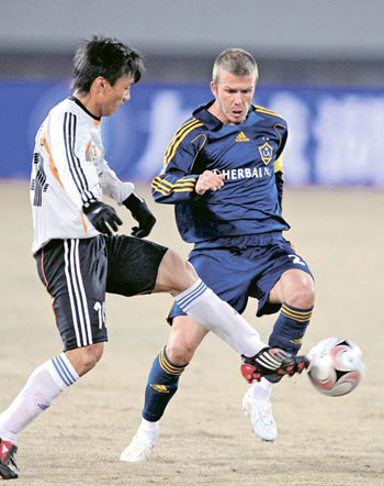 這次洛杉磯銀河“亞洲之旅”共分韓國首爾、中國上海及香港3站,貝克漢姆5日于上海八萬人體育場帶領銀河以3﹕0擊敗東亞晨曦聯(lián)隊。貝克漢姆正選上陣,披甲70分鐘,并貢獻了1次助攻。
